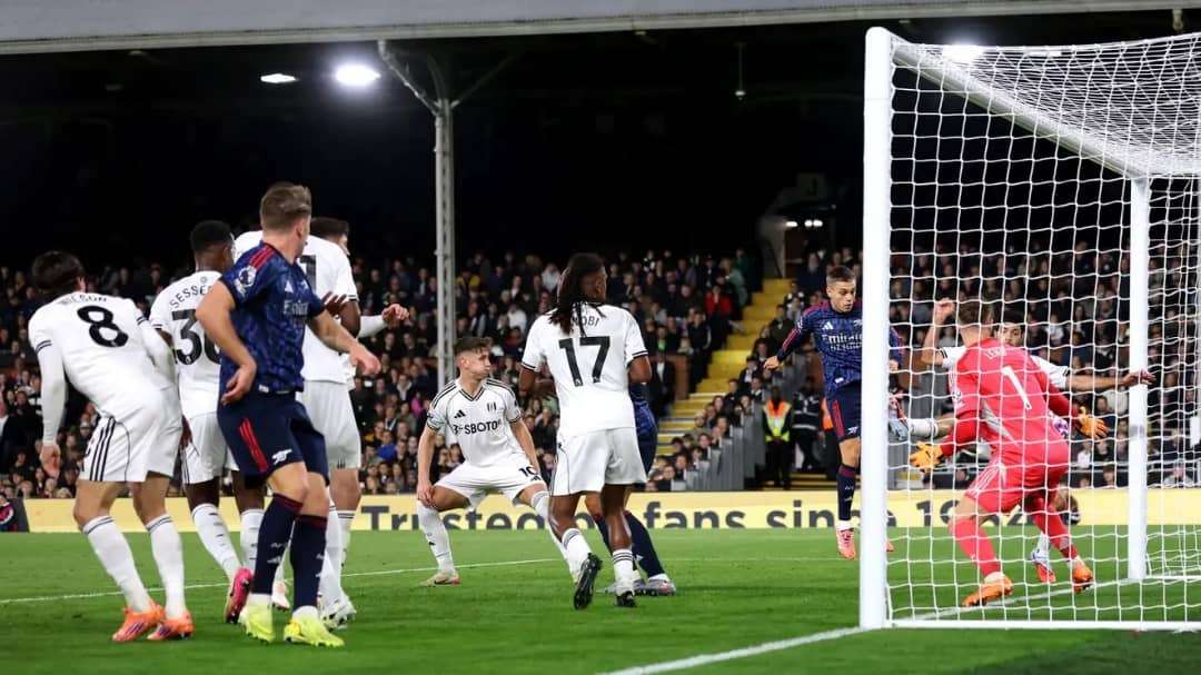 وواصل ساكا إمداداته بعدما توغل من الجهة اليمنى قبل إرسال عرضية إلى داخل منطقة جزاء فولهام، قابلها كالافيوري بتسديدة على الطائر، إلا أنها علت العارضة.