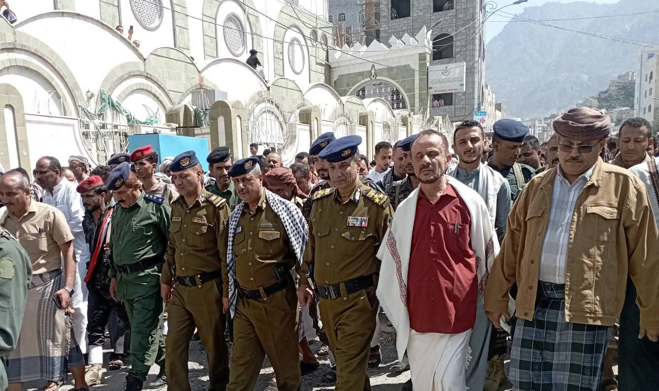 كما عبّر المشيعون عن وفائهم لدماء الشهيد وكل الشهداء وتقديرهم لتضحيات رجال الأمن، مؤكدين أن رحيل العقيد النقيب سيظل محفورا في ذاكرة تعز، رمزا للشجاعة والإخلاص، ومدرسة في أداء الواجب الوطني.