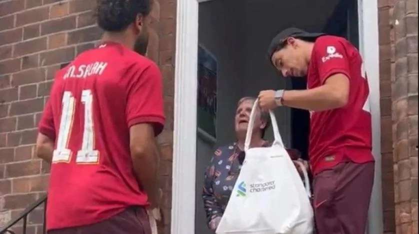 فاجأ محمد صلاح ولاعبو ليفربول الإنجليزي سكان المدينة والمجتمع المحلي بزيارة مفاجئة للمشجعين لمنحهم هدايا تذكارية من خلال طرق أبوابهم.