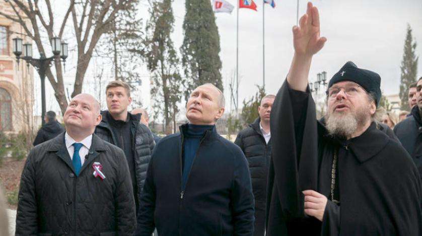 وفي زيارة مفاجئة إلى سيفاستوبول، الميناء الرئيسي لأسطول البحر الأسود الروسي في شبه جزيرة القرم، زار بوتين مدرسة للفنون بصحبة الحاكم المحلي ميخائيل رازوجاييف، وفقاً لصور بثتها قناة «روسيا-1» التلفزيونية. وكتب رازوجاييف على «تلغرام»: «يعرف رئيسنا فلاديمير فلاديميروفيتش بوتين كيف يصنع مفاجأة، بالمعنى الجيد للكلمة». وأضاف رازوجاييف أن بوتين «جاء شخصياً، وقاد سيارته بنفسه، لأنه في يوم تاريخي مثل اليوم، يكون دائما إلى جانب سيفاستوبول وشعبها».