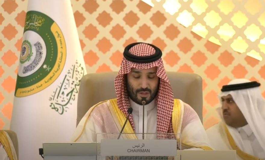 وقال ولي العهد في كلمته التي القاها عقب تسلم المملكة رئاسة الدورة العادية الـ 32 لاجتماع مجلس جامعة الدول العربية على مستوى القمة المنعقدة في مدينة جدة السعودية "نؤكد لدول الجوار، وللأصدقاء في الغرب والشرق، أننا ماضون للسلام والخير والتعاون والبناء، بما يحقق مصالح شعوبنا، ويصون حقوق أمتنا".
