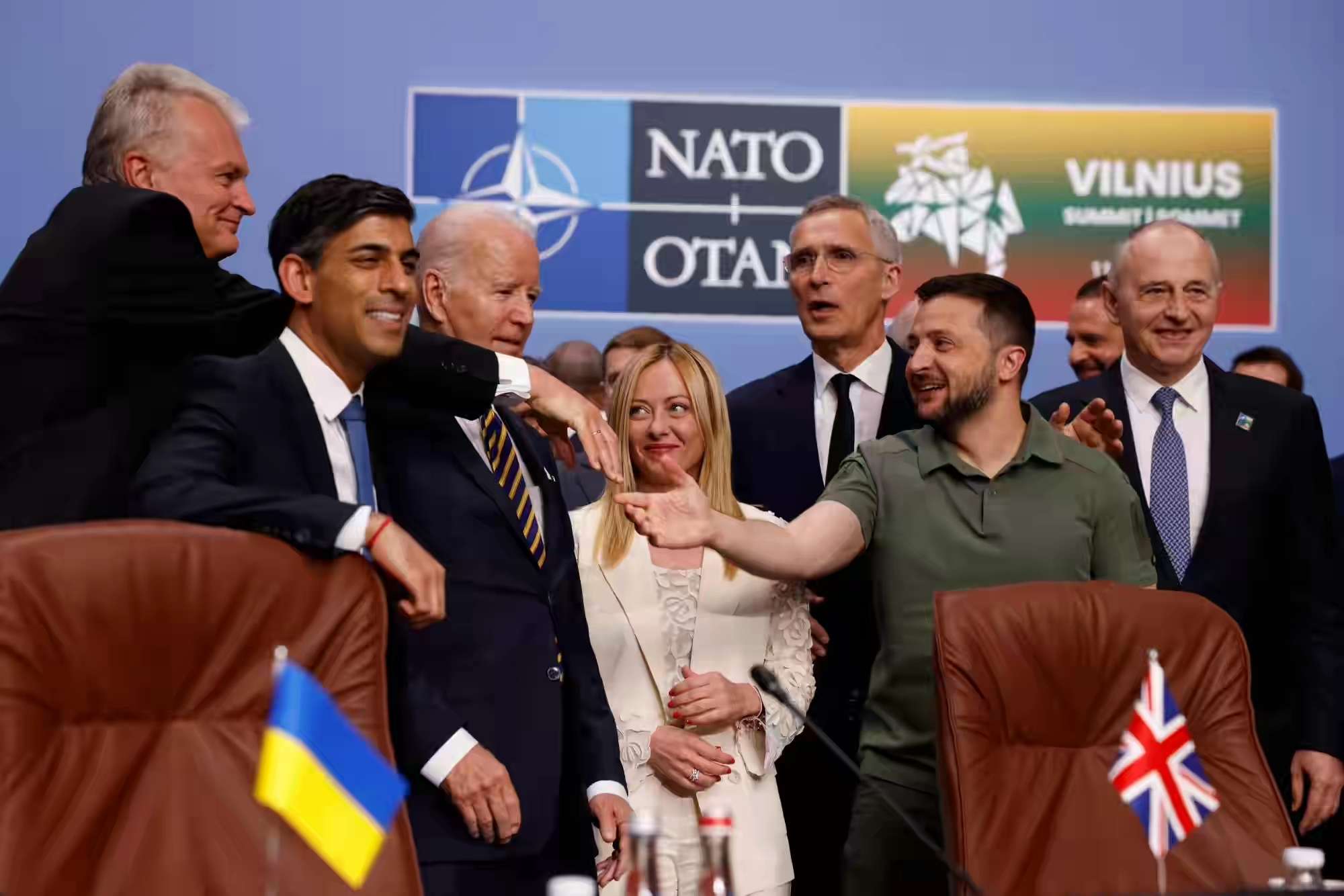 وعرضت قمة فيلنيوس الدعم لأوكرانيا في مواجهة غزو روسيا، وتعهدت دول منفردة بتقديم أسلحة جديدة، لكن لم يُحدد موعد لنيلها عضوية الحلف ما دامت الحرب مستمرة. واتفق أعضاء مجموعة السبع على أن تتفاوض كل دولة على اتفاقات لتوفير «ضمانات أمنية ومساعدة أوكرانيا في تعزيز جيشها».