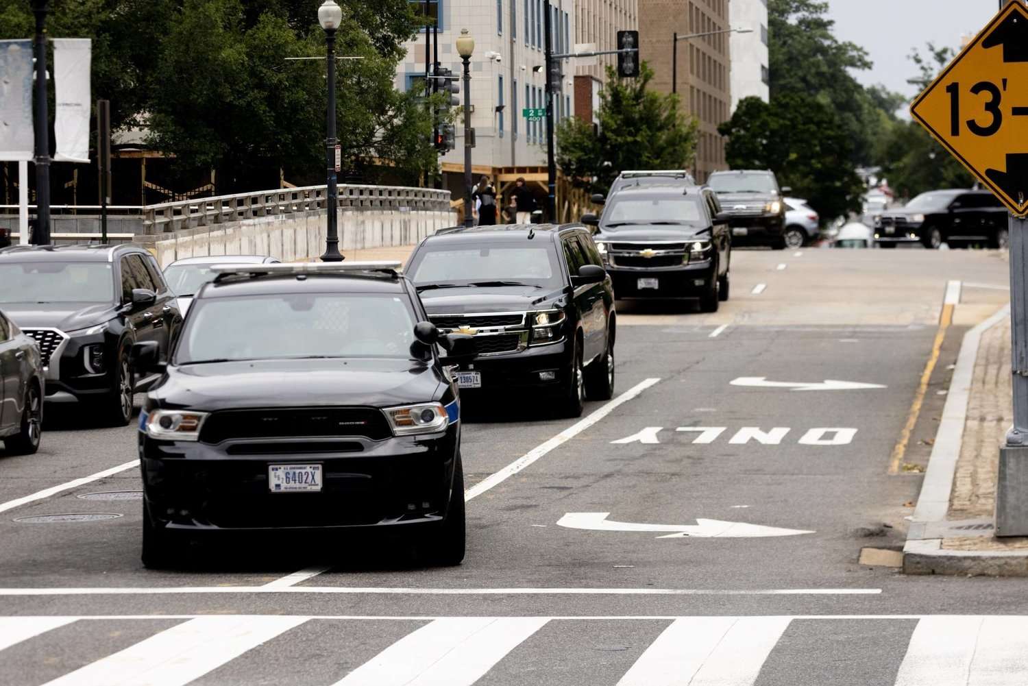 موكب ترمب لدى وصوله إلى المحكمة (إ.ب.أ)