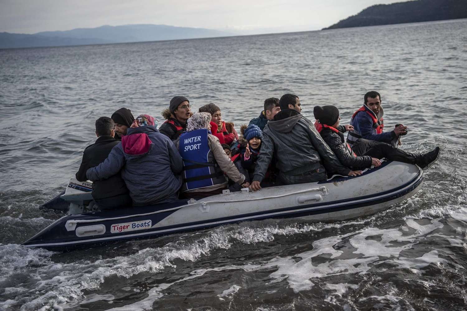 مهاجرون على سواحل جزيرة ليسبوس بعد مغادرتهم تركيا (د.ب.أ)