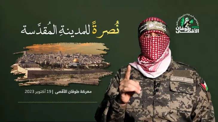 توعد أبو عبيدة، الناطق العسكري باسم كتائب عز الدين القسام، الجناح العسكري لحركة المقاومة الإسلامية (حماس) الاحتلال الإسرائيلي بـ "معركة طويلة" وقال إنهم مستعدون لها، داعيا الشعوب العربية إلى أن "تحتشد وتزحف" إلى حدود فلسطين.