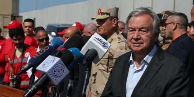 من معبر رفح.. "غوتيريش" يدعو إلى وقف إطلاق نار إنساني لضمان وصول المساعدات إلى غزة