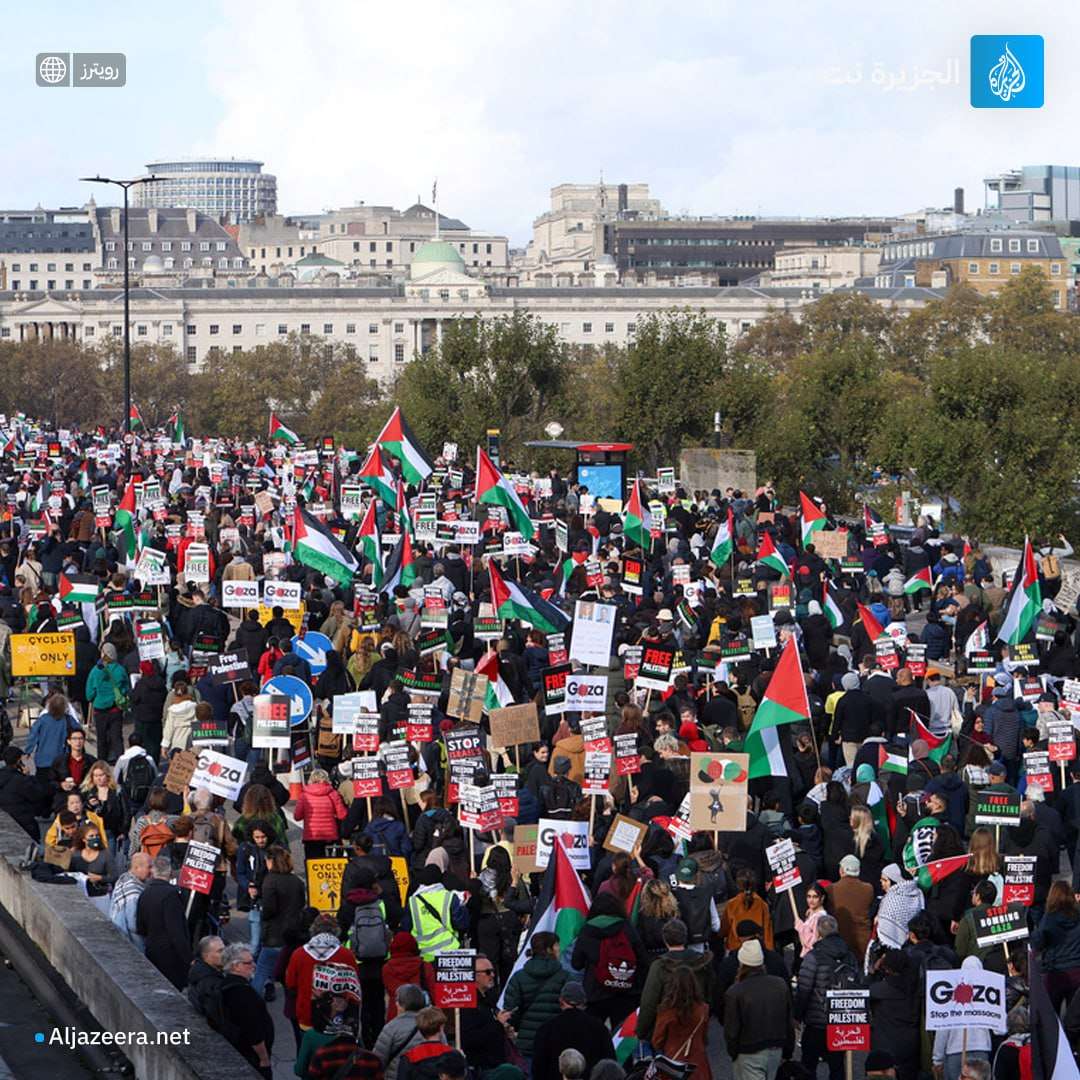 وشهدت مدن بريطانية، السبت، مظاهرات منها لندن ومانشستر وغلاسكو هتف خلالها المحتجون ضد إسرائيل، رافعين لافتات "غزة أوقفوا المذبحة" و"الحرية لفلسطين.. أنهوا الاحتلال الإسرائيلي".