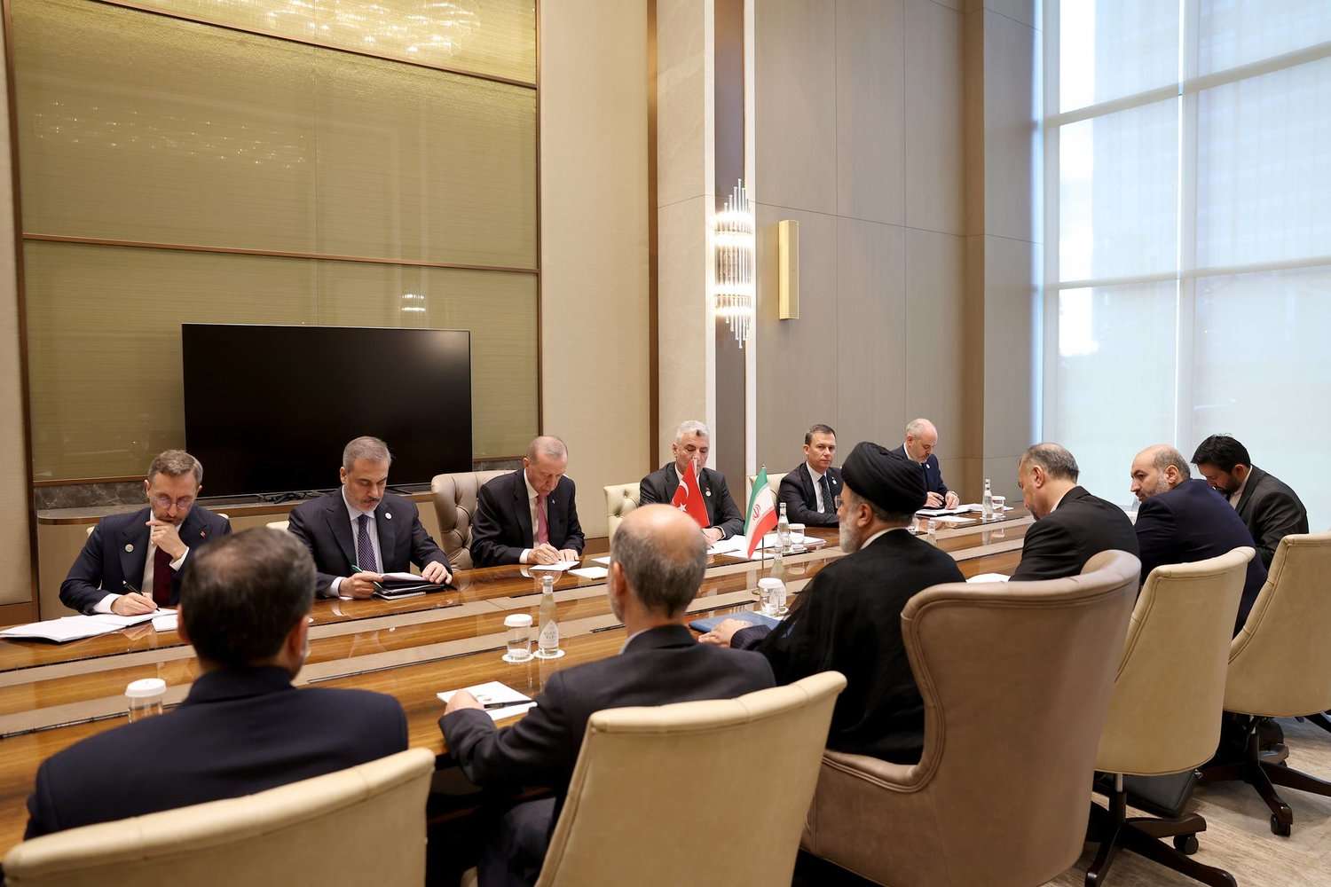 واجتمع إردوغان ورئيسي على هامش قمة قادة تسع دول من منظمة التعاون الاقتصادي (إيكو) الإقليمية قمة في العاصمة الأوزبكية طشقند. وندد إردوغان في كلمته بالغرب بسبب «خبثه» بشأن الوضع في غزة.