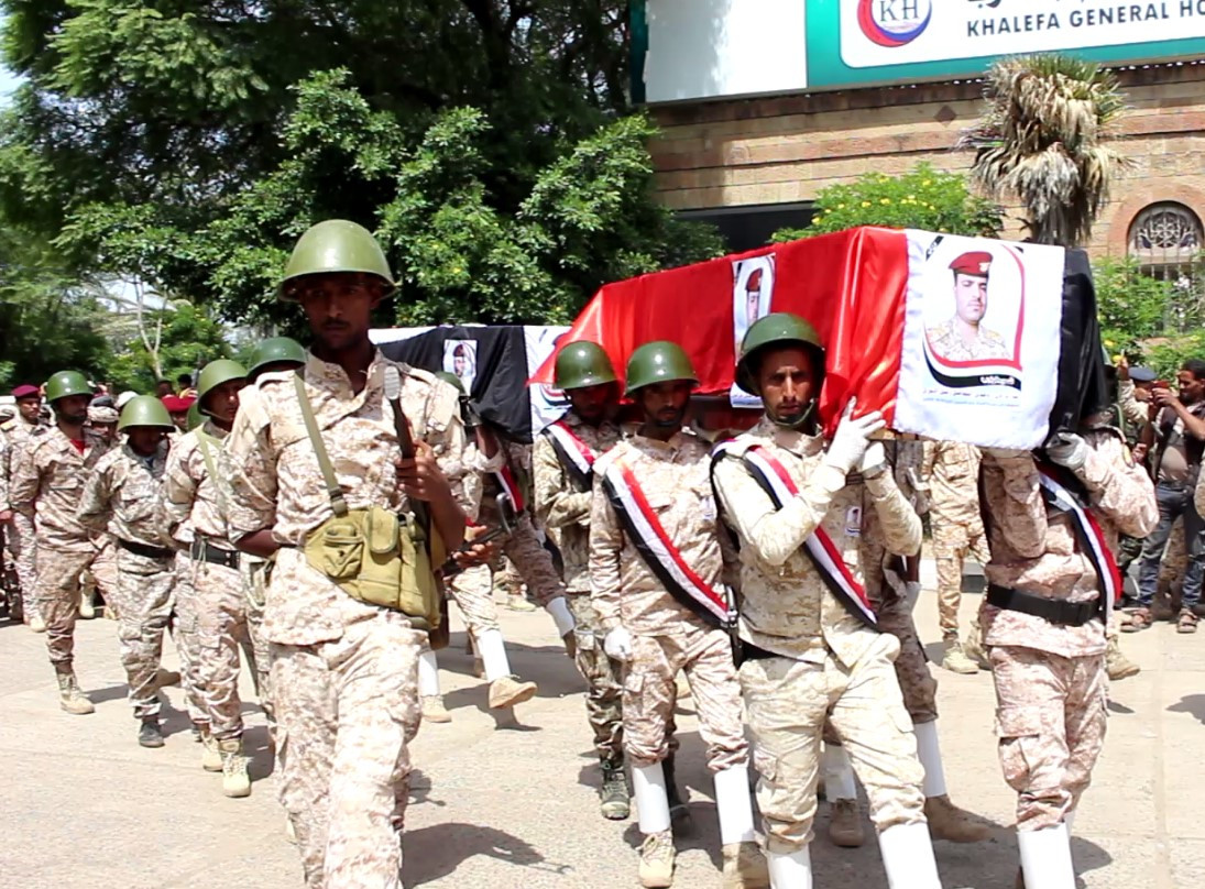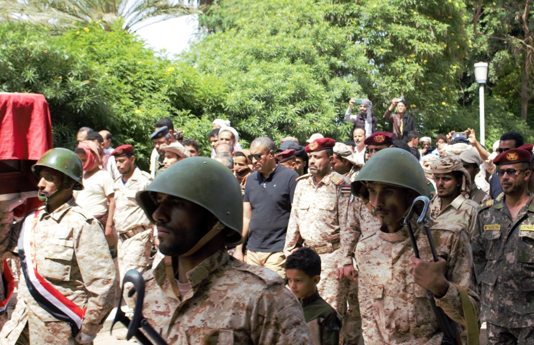وانطلقت مراسم التشييع الرسمي والشعبي، من مستشفى خليفة وجابت شوارع مدينة التربة، حيث حمل جثمانا الشهيدين على أكتاف زملائهم من القوات المسلحة والأمن ملفوفين بالعلم الجمهوري، في موكب تقدمه، قائد محور طور الباحة، قائد اللواء الرابع مشاه جبلي، اللواء الركن أبوبكر الجبولي، ومدير مديرية الشمايتين عبدالعزيز الشيباني، ومدير شرطة المديرية العقيد عبدالله الوهباني.